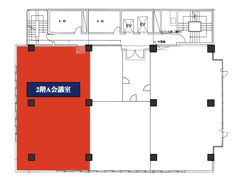 | 2階A会議室 | 111㎡ | 60名 | 48名 | 42名 | 54名(6島) | 48名(8島) | 72名 | - | ¥16,500/1h ¥133,650/9h |