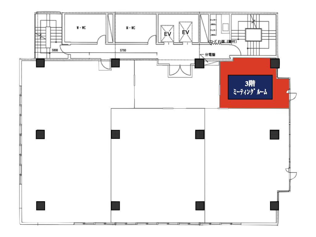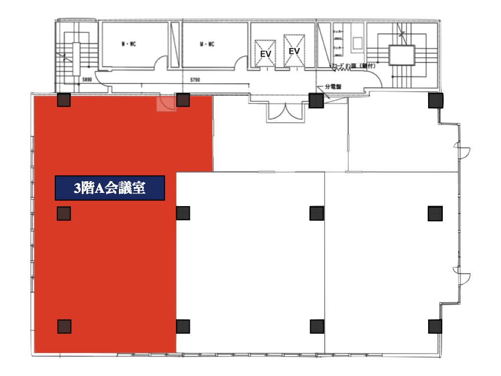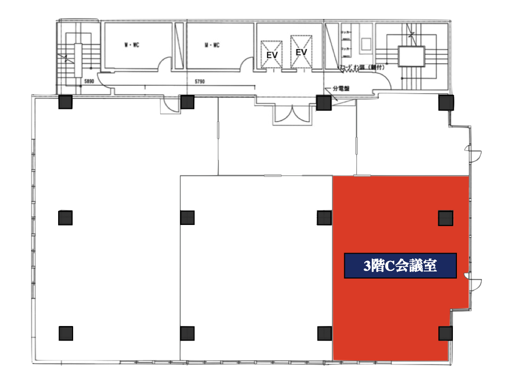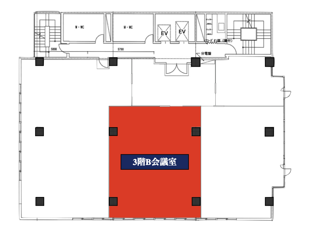 | 3階B会議室 | 78㎡ | 48名 | 36名 | 30名 | 45名(5島) | 36名(6島) | 57名 | - | ¥12,650/1h ¥102,410/9h |